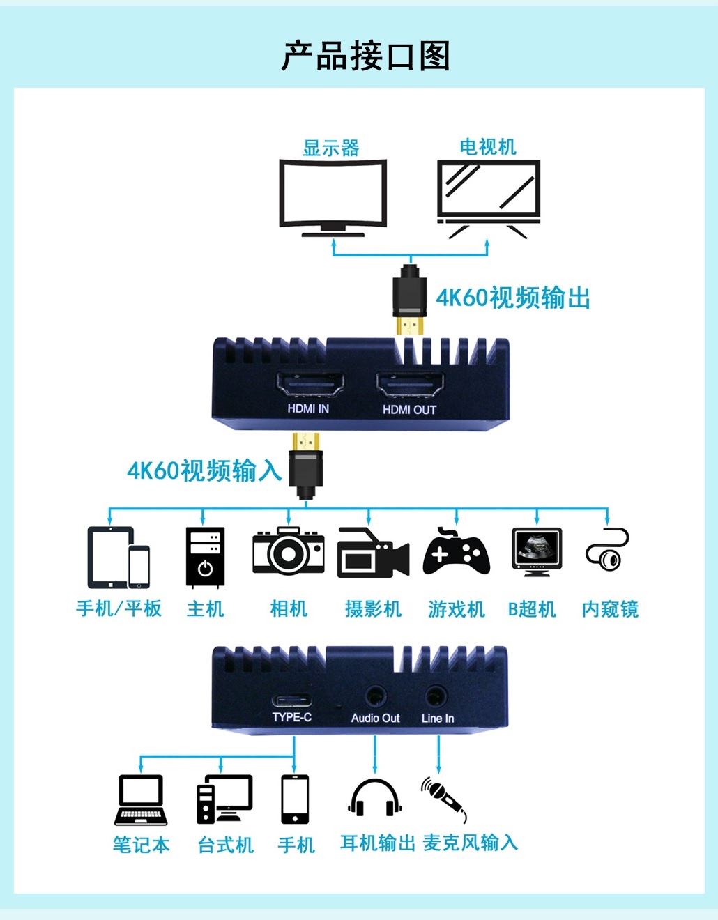 產品簡介 | UD430H一款4K 60HZ HDMI高清視頻采集盒,它采用了高速的TYPE-C接口,同時采用 UVC無驅設計,用戶可以做到即插即用無需安裝驅動。其最高分辨率可以實現4096×2160。 真正10Bit實時HD全分辨率高清無壓縮視頻采集,實現真正廣播級、 好萊塢電影級別的采集 編輯,滿足各種全高清攝像機實時監視采集及抓圖的需求。 我們提供完整的SDK開發包,可以選擇VisualBasic、VisualC++、Delphi,C#,Labview等多 種編程語言通過SDK進行開發。提供完整的Labview VI函數和測試demo程序,方便客戶快速 開發相關LABVIEW程序。我們還提供調用范例程序源程序及函數詳細調用說明,方客戶輕松 開發自己的應用系統;同時我們提供完善的開發技術支持,并可根據客戶要求量身定做SDK。 |