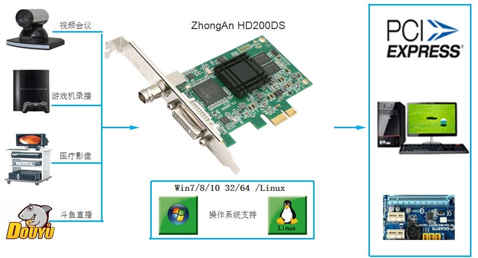 產(chǎn)品簡介 | HD200DS一款支持全高清1080P 60HZ高清視頻采集卡,板卡采用了高速的PCI-E 2.0 X1接口,